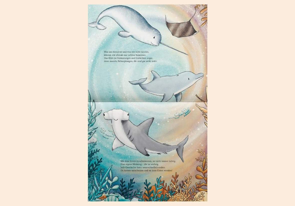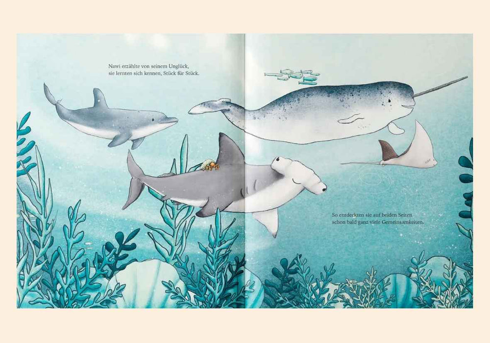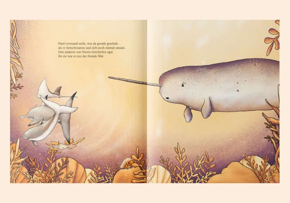„(K)einer von uns“ – Ein Wendebuch über Integration, Mut und Freundschaft Nawi, der kleine Narwal, verliert sein Zuhause und begibt sich auf die Reise durch unbekannte Gewässer. Dabei trifft er auf Meerestiere, die seine Andersartigkeit aus verschiedenen Perspektiven betrachten. Wird es Nawi gelingen, Freunde zu finden und Vorurteile zu überwinden? Dieses einzigartige Wendebuch erzählt zwei Geschichten: Die eine zeigt, wie Offenheit und Freundschaft aus Fremden Vertraute machen können. Die andere warnt vor der Macht von Vorurteilen und der Einsamkeit, die... mehr lesen