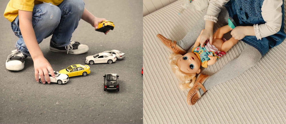 🚂 Spielzeug: Jungs bekommen die Dinos, Autos und Werkzeuge. Mädchen bekommen die Pferde, Puppen und Küchen. Und auch hier haben wir schnell sehr viel Stereotypie verankert.