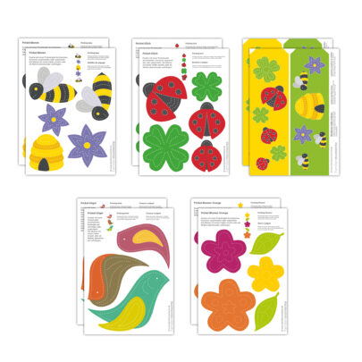 - 10 Prickelvorlagen DIN A5 aus 100% Recyclingpapier (2x Windlichter Käfer & Bienen, 2x Bienen, 2x Glück, 2x Vögel, 2x Blumen Orange)