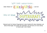 Ein modernes Freund*innenbuch, das Vielfalt feiert, den Umgang mit Gefühlen fördert und Kinder ermutigt, die Welt mitzugestalten. In "Meine Crew" können sich insgesamt 31 Kinder eintragen. Statt Fragen nach dem späteren Berufswunsch oder der Augenfarbe, beschäftigt sich das Buch mit Dingen, die für Beziehungen wirklich wichtig sind: Gefühle, Toleranz, Gemeinschaft, Selbstwirksamkeit. Es zeigt, dass jeder Mensch anders ist und doch alle etwas gemeinsam haben. Es ermutigt Kinder dazu, sich selbst zu erforschen und somit auch ihre Freund*innen besser zu verstehen. Es gibt Gemeinschaftsseiten, in denen sich die ganze Crew eintragen darf: Sie können ihre Fingerabdrücke vergleichen und auf Protestschildern schreiben oder zeichnen, welche Veränderungen sie sich für die Welt wünschen. Außerdem erfahren sie, wie sie ihre Umgebung verändern können - zuhause, in der Schule und der ganzen Welt.