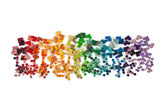 Das Set enthält über 400 kleine Holzteile in zwei Formen und 36 Farbnuancen des Regenbogens. Verpackt in einem GOTS-zertifizierten Baumwollbeutel.