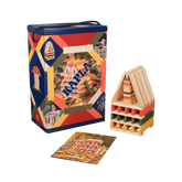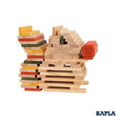 Die KAPLA-Plättchen sind aus naturbelassenem, nachhaltigem Pinienholz (Seekiefer) gefertigt, das aus französischen, zu 100% nachhaltig bewirtschafteten Wäldern stammt. Die farbigen Holzplättchen sind mit lebensmittelechter Farbe gefärbt.