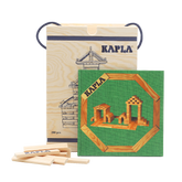 Der Kasten enthält 280 identische, naturbelassene KAPLA-Holzplättchen, die nur den eigenen Ideen folgend, ohne jede Befestigung, aufeinandergestapelt werden.