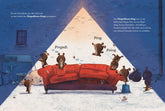 Und die Überraschung gelingt! Die Tiere im Wald sind begeistert von dem neuen Spielzeug. Und der kleine Bär? Kaum ist er auf das kuschelige Sofa geklettert, fällt er, erschöpft von der aufregenden Nacht, in einen tiefen Schlaf.