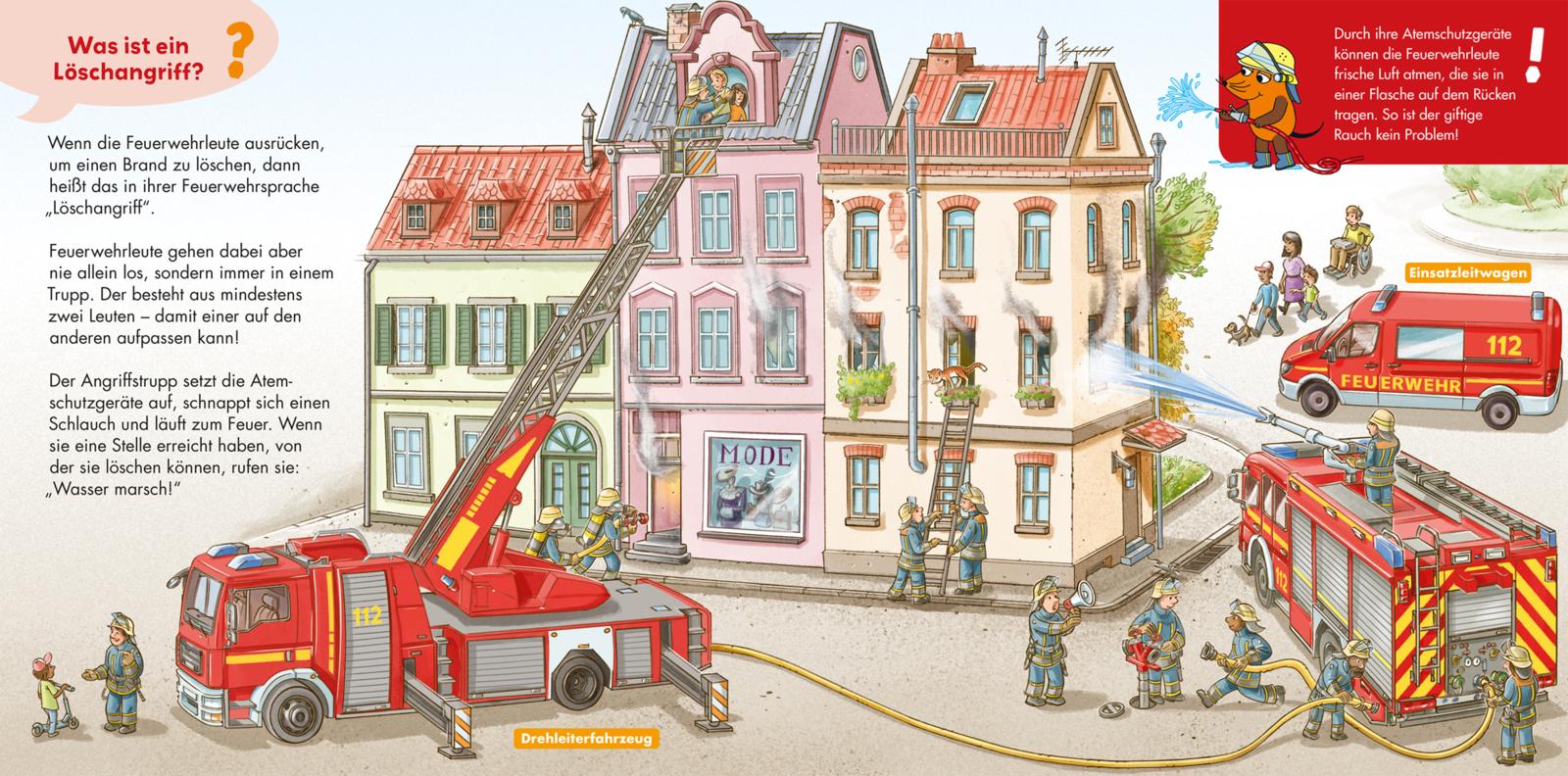 • Liebevolle und detailreiche Bilder: Das Thema Feuerwehr ist von renommierten Sachbuchillustrator*innen altersgerecht, sachgenau und lebendig in Szene gesetzt.