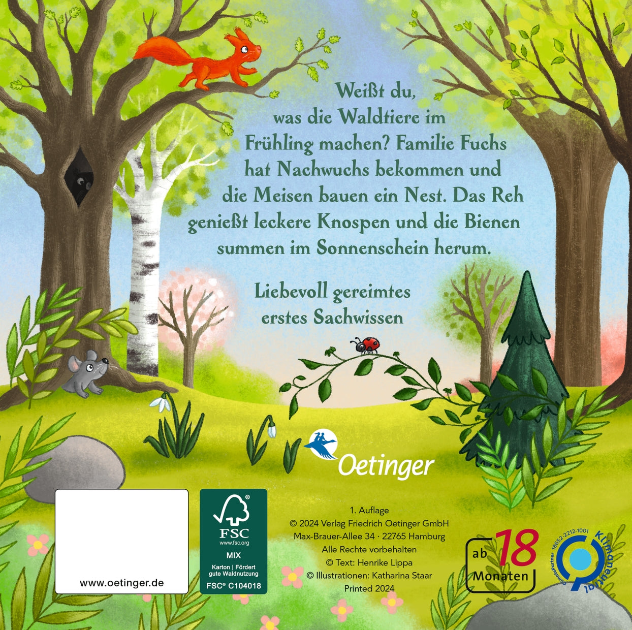 Natur und Jahreszeiten spielerisch entdecken: In diesem hochwertigen Pappbilderbuch dreht sich alles um das Frühlingserwachen der Tiere und Pflanzen im Wald. Mit gereimtem Sachwissen und wunderschönen Illustrationen ist das Pappbilderbuch für Kinder ab 18 Monaten geeignet. Es ist ein wunderbares Kinderbuch, um den Kleinsten schon jetzt die Faszination der Natur näherzubringen.
