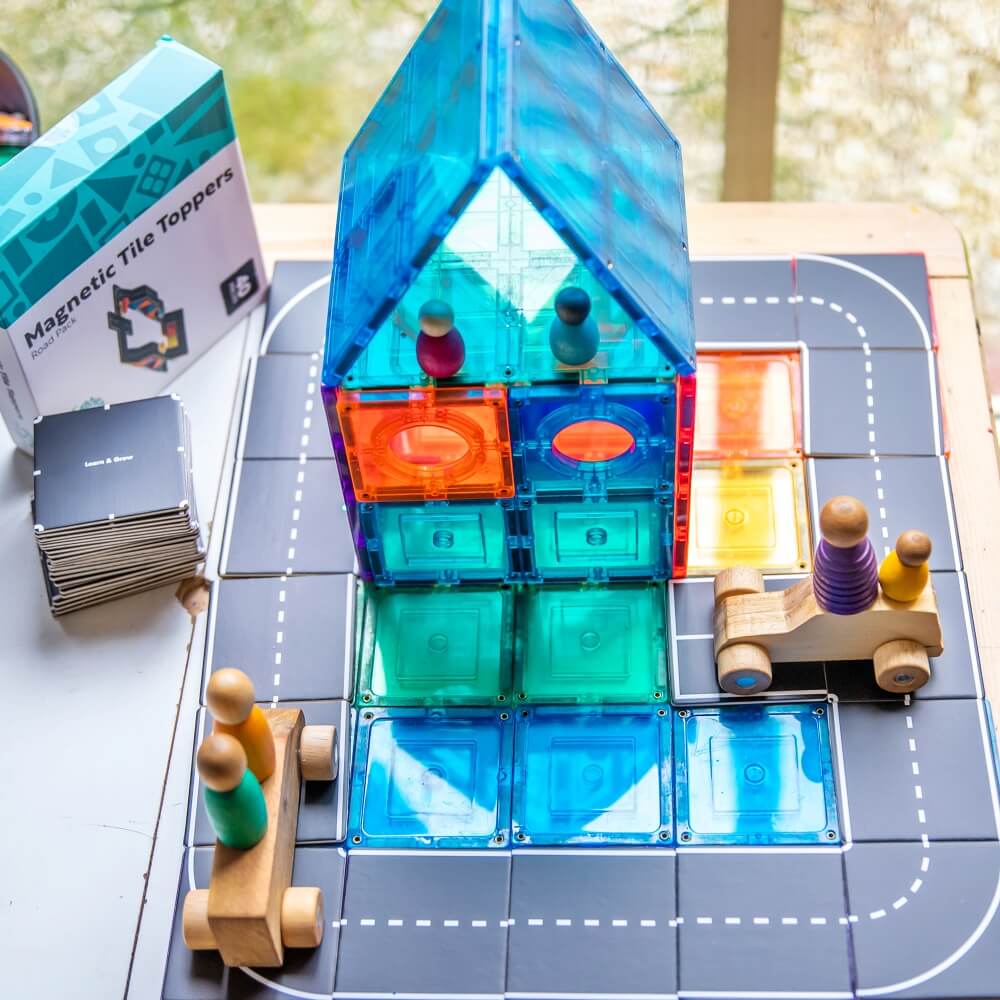 Die patentierten Magnetic Tile Toppers von Learn & Grow sind mit allen gängigen Magnetbaustein-Marken kompatibel.