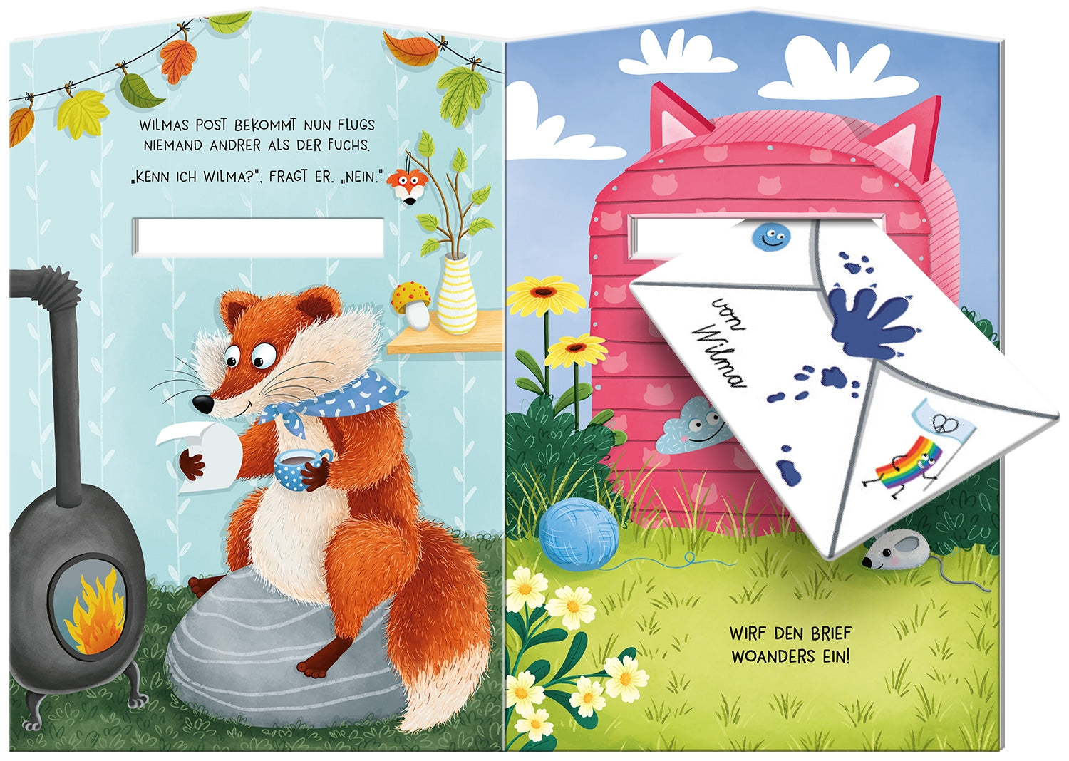 Wilma Waschbär schreibt schön schief Max, dem Mäuschen, einen Brief. Wilma hat nämlich Käsekuchen gebacken und möchte Max dazu einladen. Doch, oje: Statt bei Max landet der Brief beim alten Dachs! Und dann beim Pferd, beim Fuchs, der Katze und dem Schaf. Ob Max seinen Brief noch bekommen wird und gemeinsam mit Wilma Käsekuchen futtern kann? Löse Wilmas Brief aus der ersten Seite und wirf ihn von Briefkasten zu Briefkasten. Dann findest du es heraus!