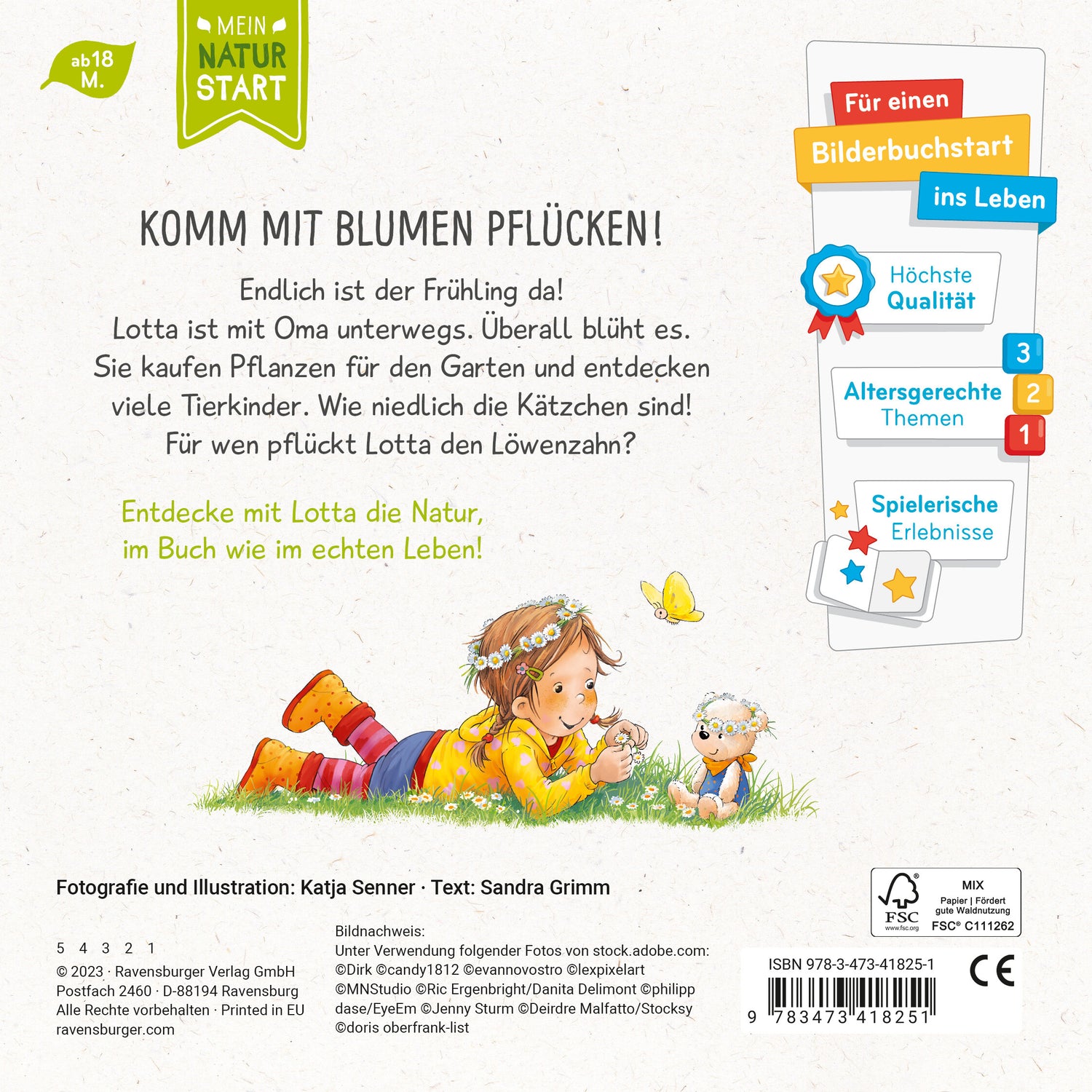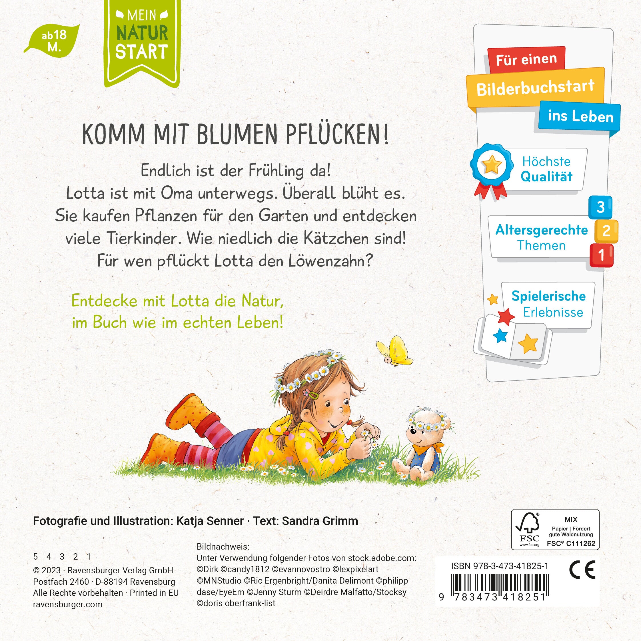 Lotta ist mit Oma unterwegs. Wie herrlich die Apfelbäume blühen! Auf der Weide streckt das Fohlen neugierig seine Nase durch den Zaun. Während Oma Pflänzchen für den Garten kauft, spielt Lotta mit den Kätzchen. Wie lustig sie sind! Auf dem Heimweg begegnet ihnen eine Schafweide mit Schäfer. Die kleinen Lämmer sind ganz neugierig und beschnuppern Lotta. Das kitzelt! Zu Hause pflanzen Oma und Lotta alles ein. Geschafft! Lotta geht die Kaninchen füttern. Oh, wie flauschig ihr Fell ist! Diese erste Vorlesegeschichte lässt Groß und Klein eintauchen in die wunderbare Frühlingswelt von Lotta. Die Kombination aus Fotos und fröhlichen Illustrationen schafft ein ganz besonderes Bilderbuch-Erlebnis. Zahlreiche kleine Bilder, die sich in den Fotos verstecken, wecken den Entdeckergeist und bieten viele Gesprächsanlässe. Das macht Lust darauf, die Natur zu entdecken – im Buch wie im echten Leben.