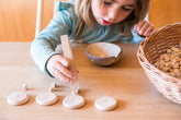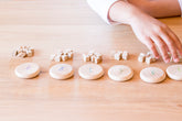 Diese Münzen aus Naturholz mit runder Form und leicht abgerundeten Kanten sind sehr angenehm anzufassen und ermöglichen es dem Kind, beim Spielen zu lernen. Spielen Sie, um zu tauschen, zu sammeln, zu ordnen, zu addieren und zu subtrahieren... Die gestanzten Zahlen fördern die ersten logisch-mathematischen Spiele.