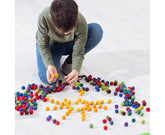 240 Filzkugeln in 12 tollen Farben – so vielseitig und natürlich kann Spielen sein. Die Perlen aus 100 % Filzwolle sind ideal für Legespiele, Farbzuordnungen, den Jahreskreis, erstes Zählen und Rechnen geeignet. Sie können die Filzkugeln auch wunderbar zur Einteilung für Gruppenarbeiten oder als Alternative zu Muggelsteinen nutzen. Die natürliche und warme Oberfläche bietet eine sinnliche Haptik und macht den besonderen Reiz dieser Filzkugeln aus. Filz besitzt eine selbstreinigende Funktion und ist zudem bei max. 30 °C im Wollwaschprogramm waschbar. So kann mit den Perlen auch bedenkenlos auf dem Boden gespielt und gelernt werden. Die Schafwolle hat zudem den „Leise-spiel-Effekt“, da die Perlen im Vergleich zu Holzkugeln leichter und somit leiser zu spielen sind.