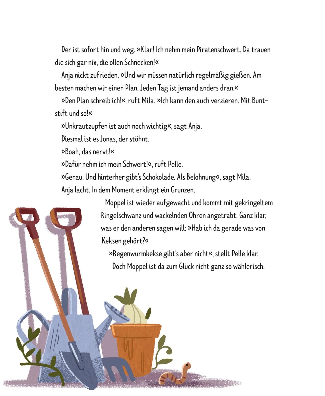 In dem wunderschönen Altbau-Stadthaus in der Risottostraße 7 wohnen vier Familien: Lilly und ihre Mutter Anja, Pelle und Mila mit ihren Eltern Regina und Hannes, Jonas mit seinen Eltern Martin und Kai und die Inhaber der Schmökerbude, Lieselotte und Bruno, mit ihrem Minischwein Moppel. Eigentlich sind die "Risottos", so der selbstgewählte Name, wie eine große Familie, denn alle sind füreinander da und unterstützen sich gegenseitig.