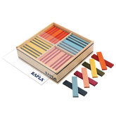 Die KAPLA-Plättchen sind aus naturbelassenem, Pinienholz (Seekiefer) gefertigt, das aus französischen, zu 100% nachhaltig bewirtschafteten Wäldern stammt. Die farbigen Holzplättchen sind mit lebensmittelechter Farbe gefärbt.