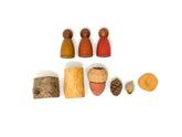 3 Nins® in 3 warmen Farben und aus dunklem Holz.