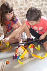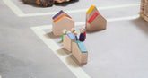 Dieses Material kann als symbolisches Spiel verwendet werden, um Geschichten und kleine Welten zu erschaffen. Geschichten zu kreieren, neue Städte, Dörfer, Straßen zu erfinden... Diese Häuser, bemalt mit den Farben des Regenbogens und einfach und natürlich gestaltet, verleihen der Nachbarschaft eine gemütliche und farbenfrohe Atmosphäre. Kinder können die erstaunlichsten kleinen Welten in einem repräsentativen Spiel kreieren, das zusammen mit losen Teilen vielseitig und offen endet.