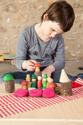 Die Nins® des Waldes werden zu einem Spielzeug, das als symbolisches Spiel verwendet werden kann, um Geschichten und kleine Welten zu erschaffen. Kombiniert mit anderen Elementen können sie jedoch Teil von mathematischen, sprachlichen und sensorischen Spielen sein, unter anderem. Darüber hinaus ist dieses Material nicht strukturiert, was es ermöglicht, es auf vielfältige Weise zu verwenden. Die Anpassungsfähigkeit dieser Materialien trägt zu kreativen und divergenten Denkweisen bei.