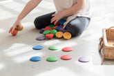 Enthält 12 Scheiben, 12 Halbkugeln, 6 Kugeln in 6 Farben.